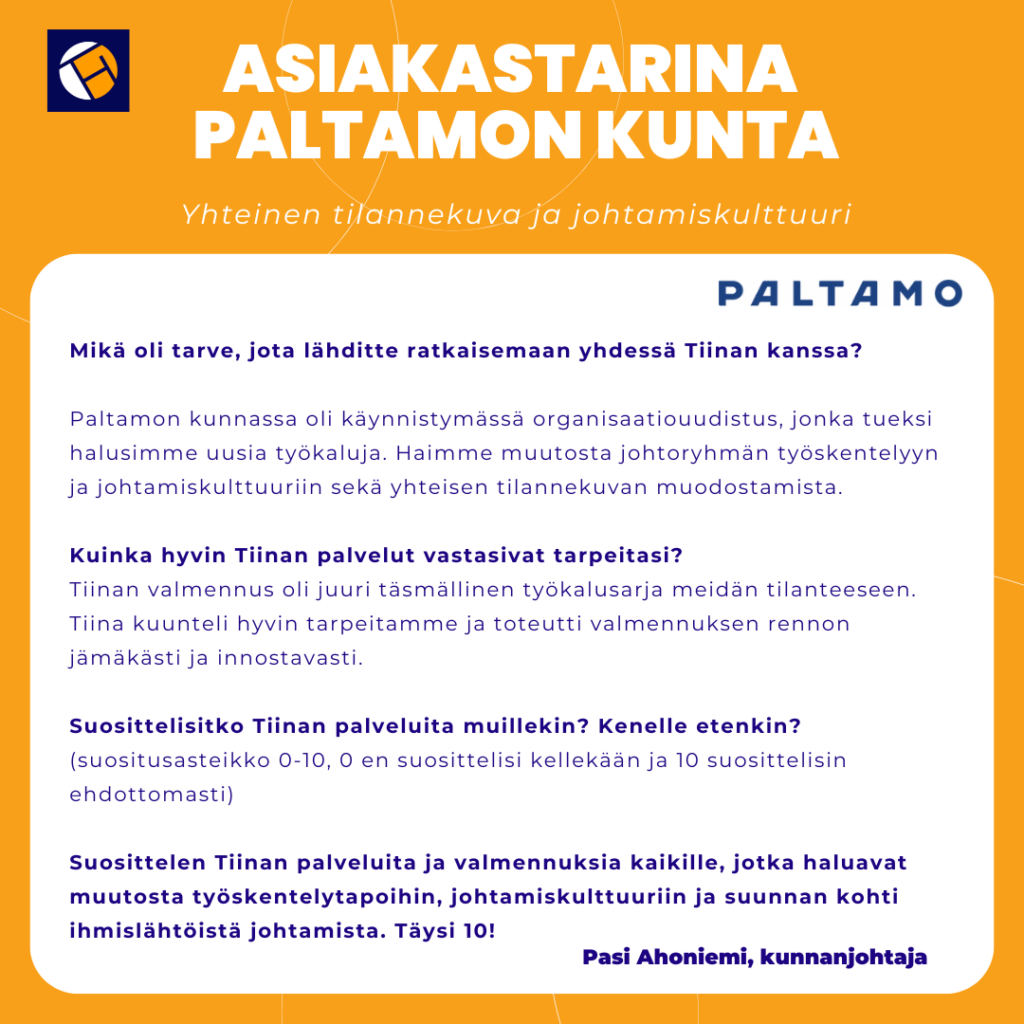 - Tehostaa johtamista muutoksessa ja parantaa organisaation suorituskykyä.