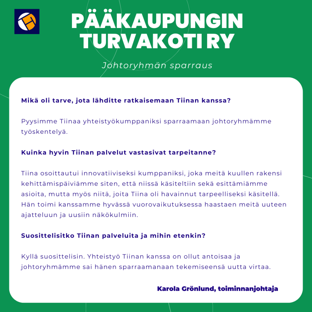 Tsekkaa myös yleisesti periaatteitani liittyen johtamisen valmentamiseen: Johtamisvalmennus